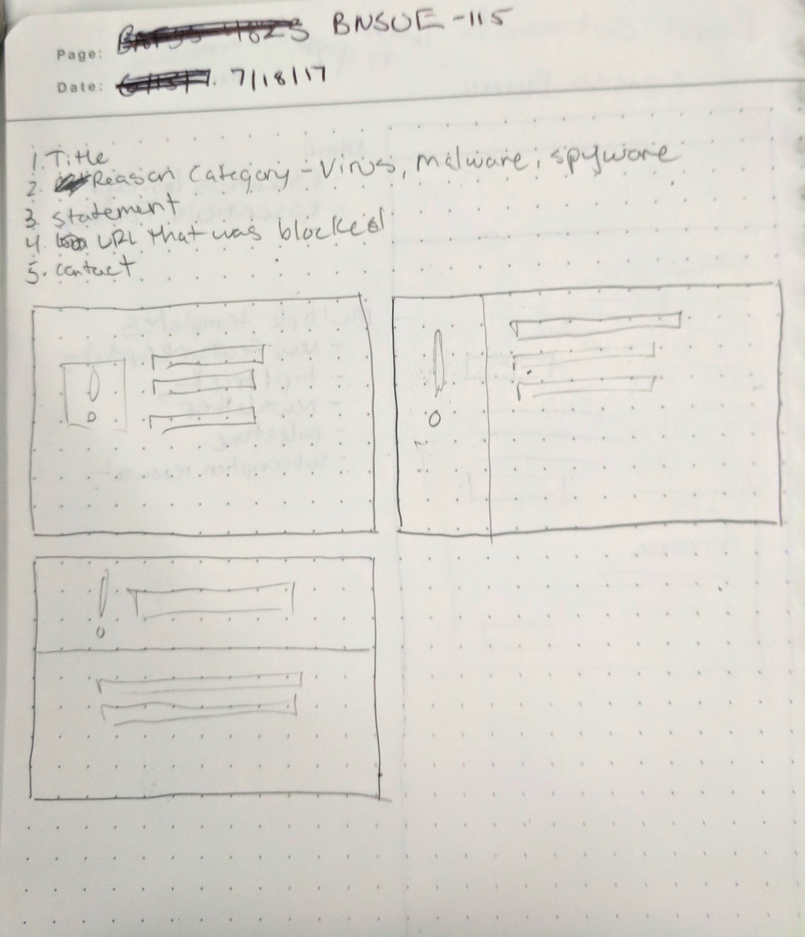 After user testing I took a look at the Web Filter pages and the ATP microservice block pages and began to create some workflow diagrams based on the current implementation. After I validated those workflows with the product managers and engineers I completed a series of sketches to better get an idea of how I could structure these pages to fit in with the current capabilities, be consistent across multiple products and be responsive.