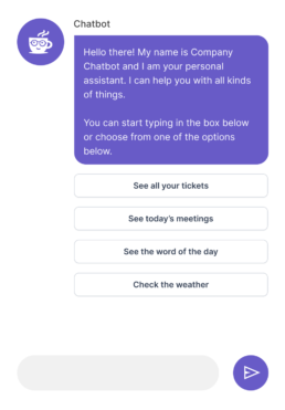 A flexible chatbot deployment solution that enabled customers to implement the core virtual assistant experience where their users are and integrate it easily into employee ecosystems.