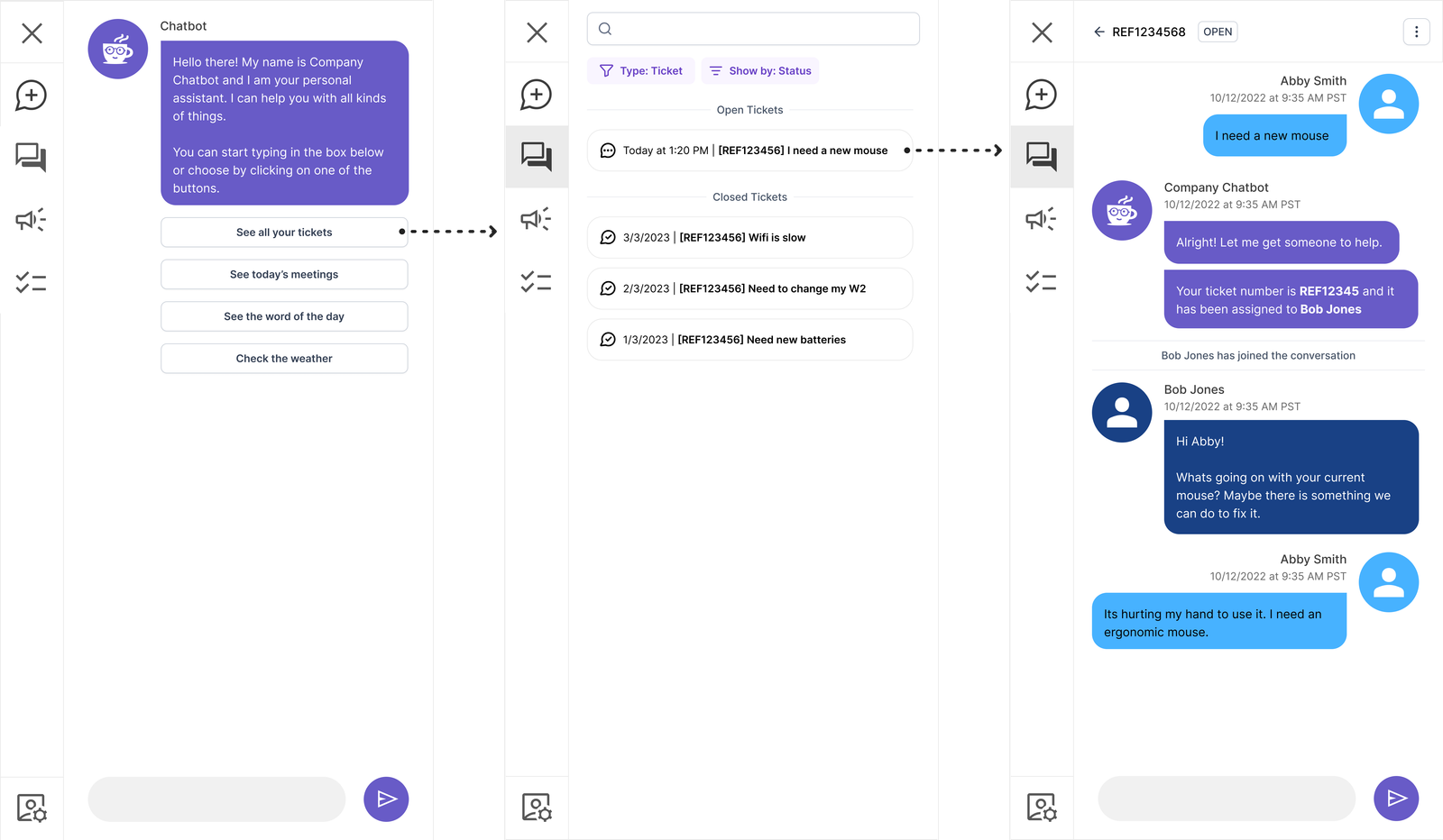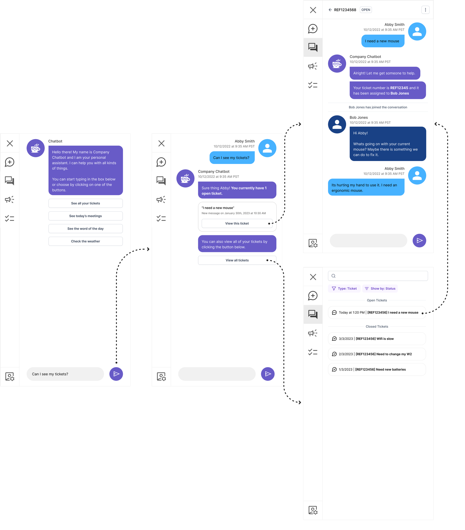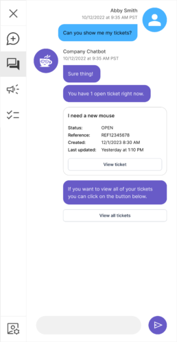 The virtual assistant was primarily being implemented as an IT related initiative in enterprise sized organizations. One of the primary motivations for this solution for those stakeholders was streamlining their support processes. The most basic function needed for their employees was the ability to view and respond to their created tickets.
