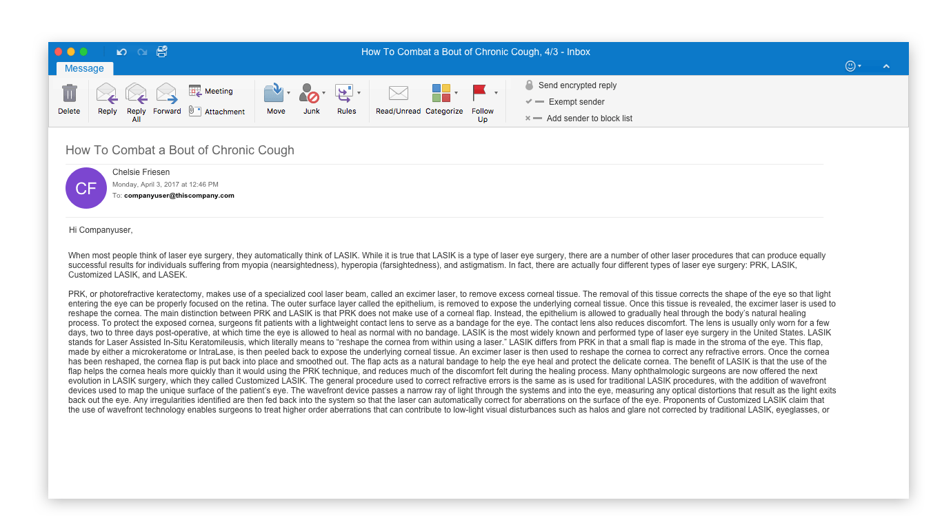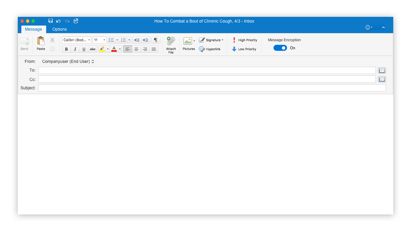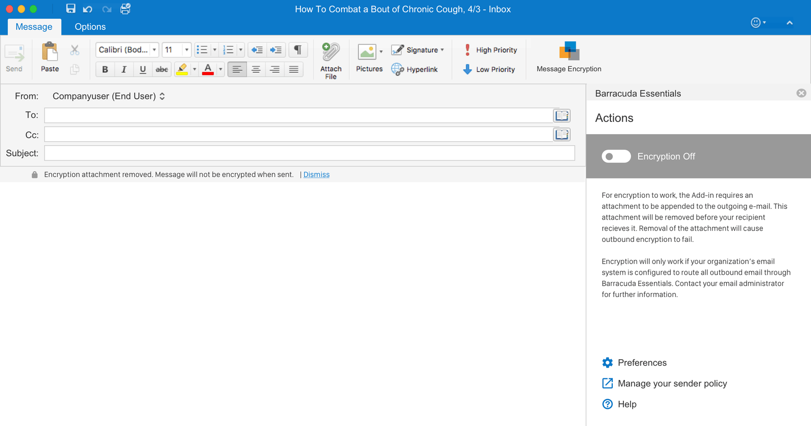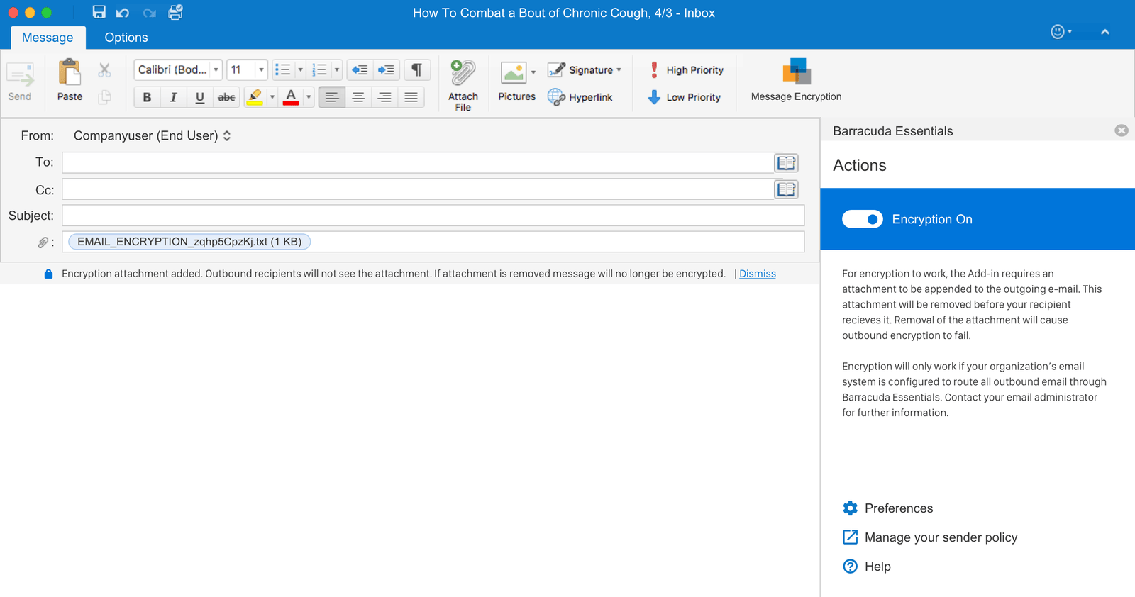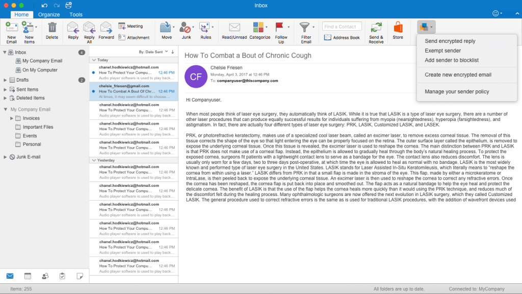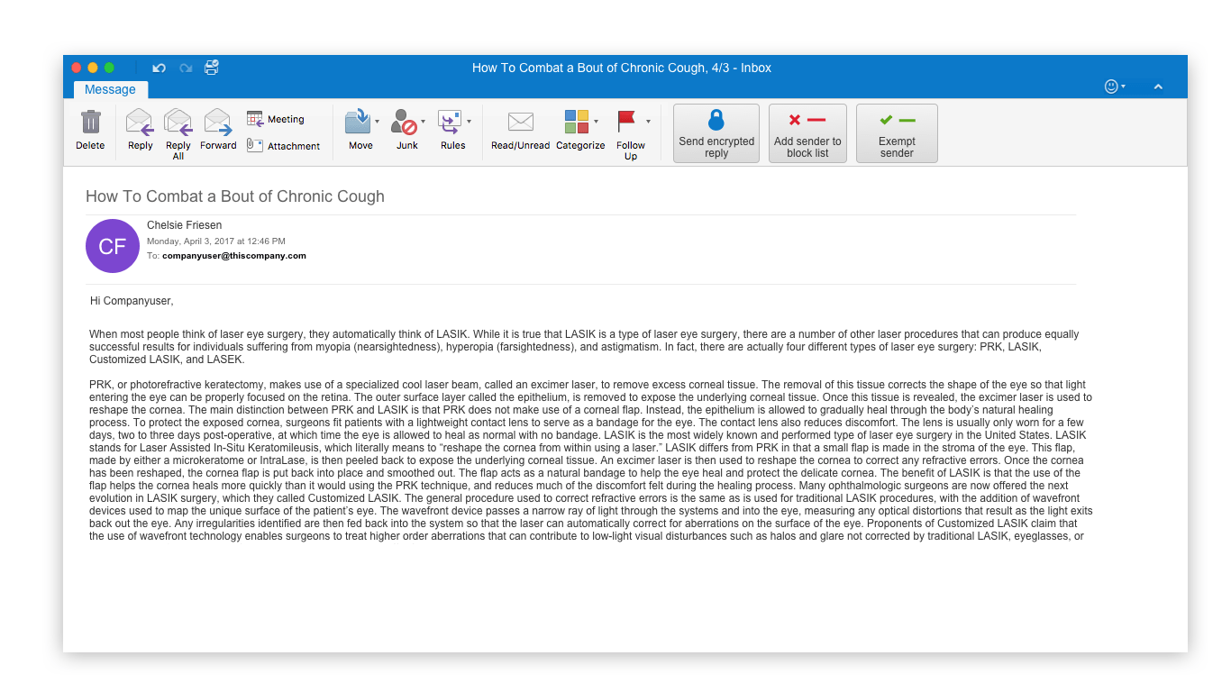 - You are a doctor who is corresponding with an outside provider. You need to send an e-mail with sensitive information to that provider. Compose an e-mail and encrypt that e-mail with the add-in.