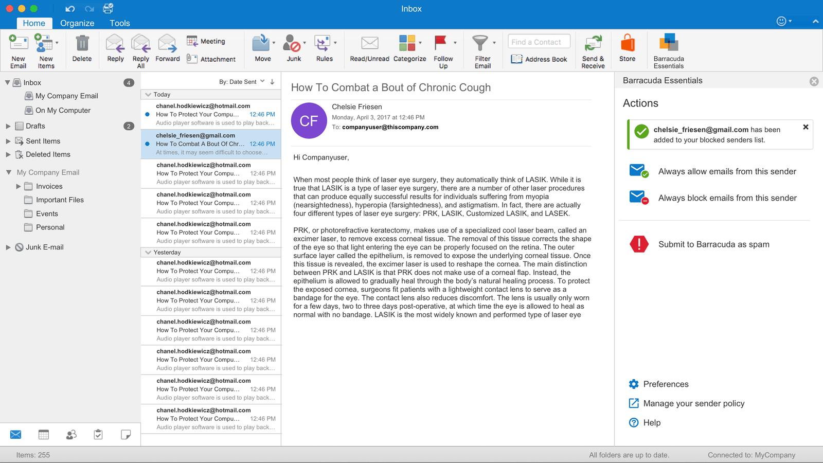 The initial release of the Outlook Add-In received a very positive reception and many customers have expressed excitement about how this feature has helped ease their concerns in transitioning to the SaaS email solution offered by Barracuda.
