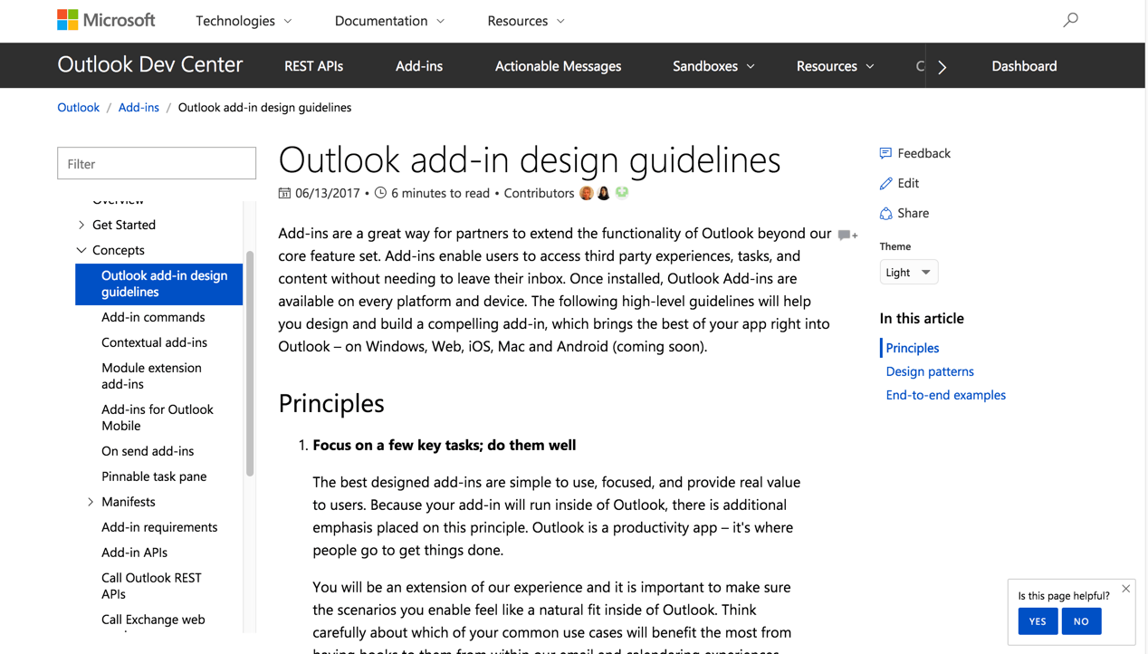 The engineering decision was made to use the new Microsoft Javascript API to build the new product. This would allow it to be compatible with PC, Mac and the web version of Outlook. I researched the guidelines for the API framework and the design guidelines from Microsoft to make sure we created a solution that felt familiar to users.
